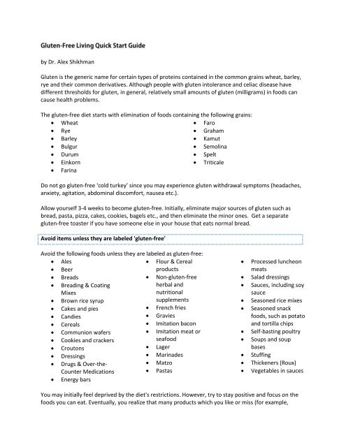 Gluten Free Quick Start Guide Ifsmed
